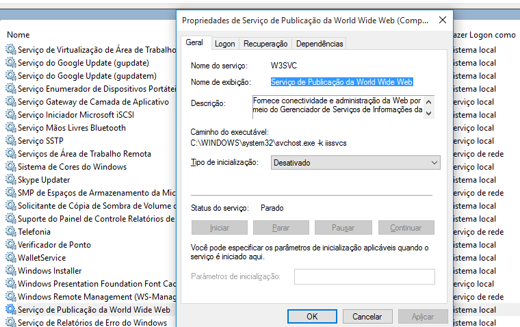 - Procure o nome do serviço na lista e dê duplo clique nele.
